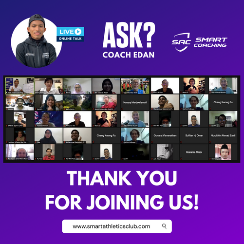 LIVE 60-minutes sharing session by Coach Edan Syah on selected topics that are specific to running. You will learn valuable tips and insights into running-related matters with scientific backups from his 10 years of experiences and knowledge as a 2:30 hours marathoner and running coach.
